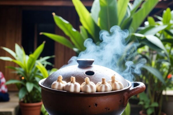 - Rebus 4–5 lembar daun salam dalam 2 cangkir air selama 5–10 menit.
