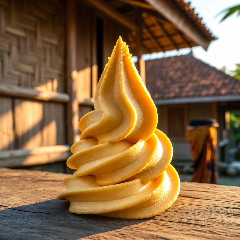 - Setelah beku, hidangan siap disajikan.