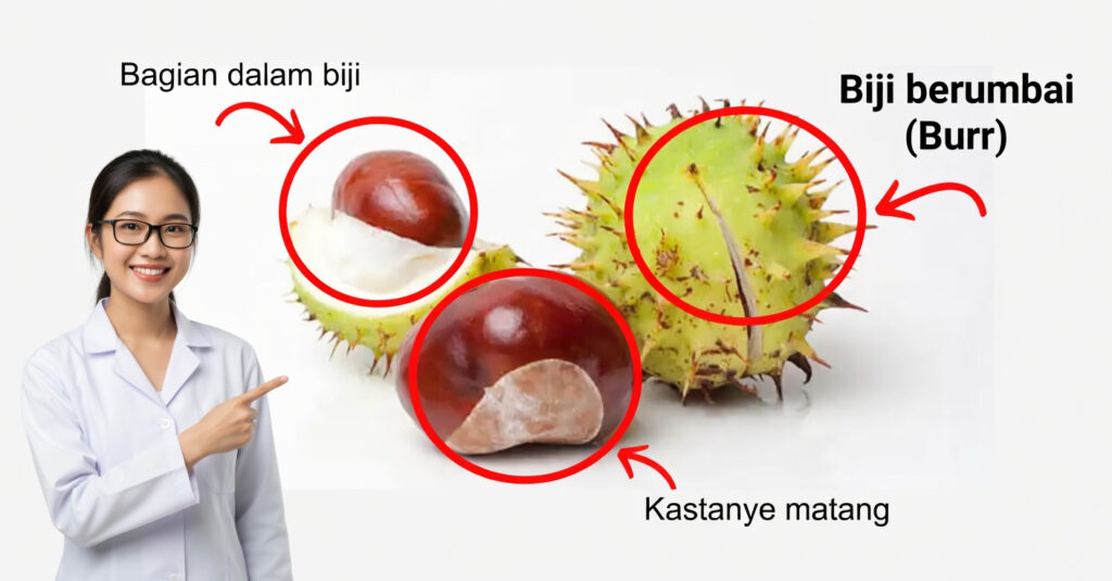 Aescin adalah komponen utama yang membuat horse chestnut begitu bernilai dalam dunia herbal. Senyawa inilah yang berperan besar dalam mendukung kekuatan pembuluh darah, membantu sirkulasi, dan mengurangi pembengkakan.