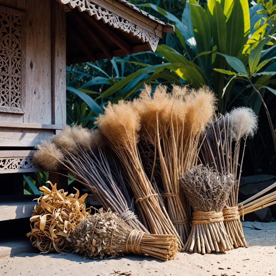 Gunakan tali atau benang alami untuk mengikat bagian pangkal ikatan. Lilitkan tali berulang kali di sekeliling batang hingga kencang, agar ikatan tetap kokoh dan tidak terurai saat proses pengeringan.