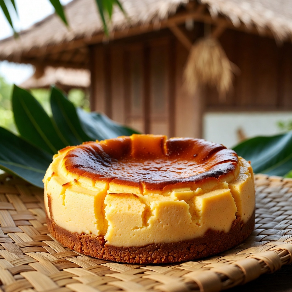 Nikmati kombinasi isian cheesecake yang lembut dan kaya rasa dengan topping karamel yang garing dan manis di permukaannya.