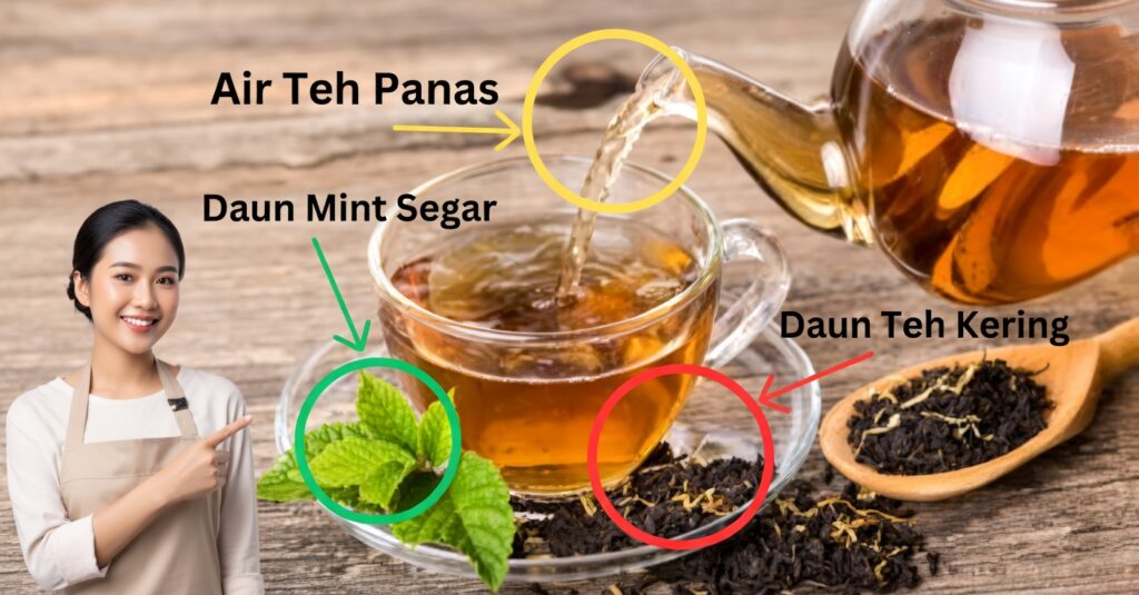 - ±10 lembar daun mint segar atau 1 sendok teh daun kering