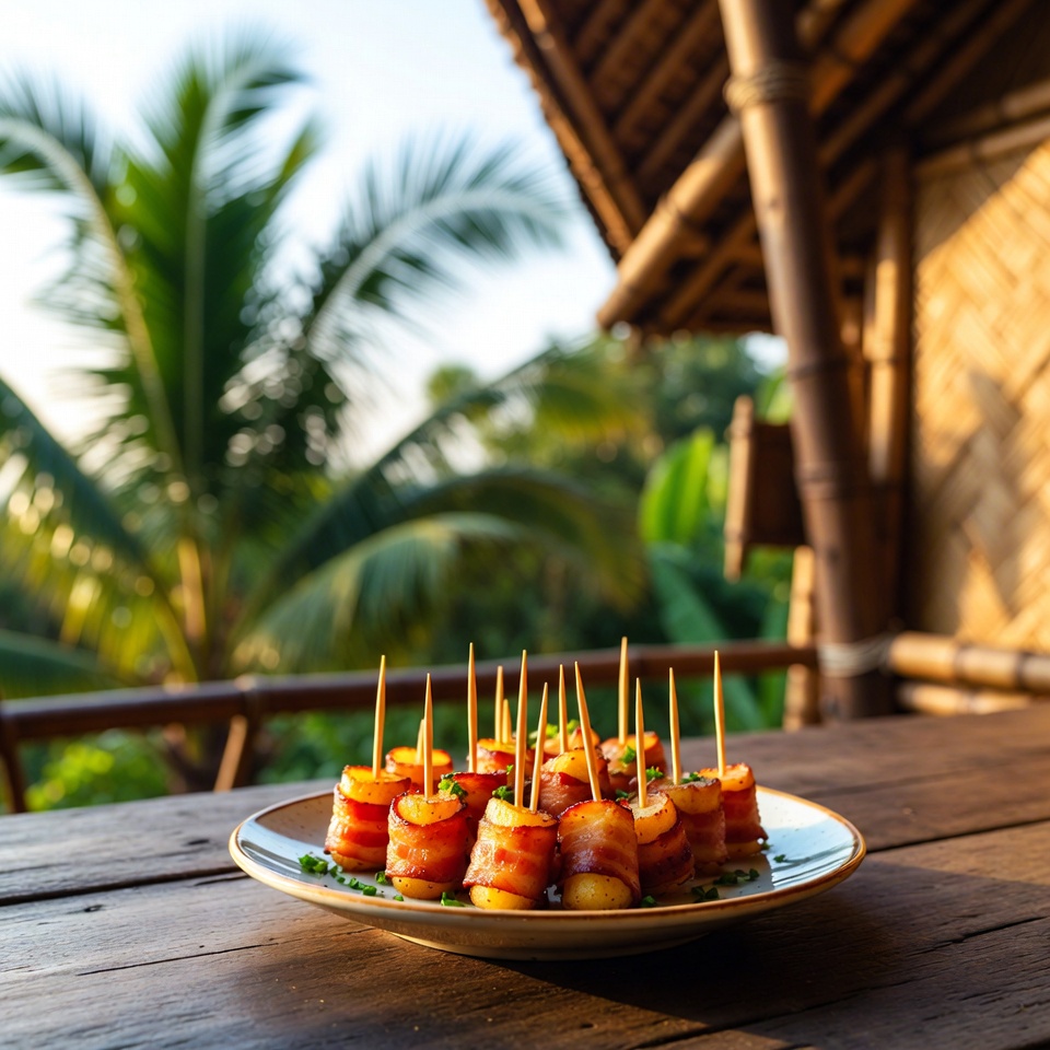 Camilan gurih dan renyah ini sempurna untuk hidangan pembuka, menu pesta, atau teman nonton film. Kentang lembut dibalut bacon yang garing, dipanggang hingga keemasan dan siap disajikan dengan saus favorit Anda.
