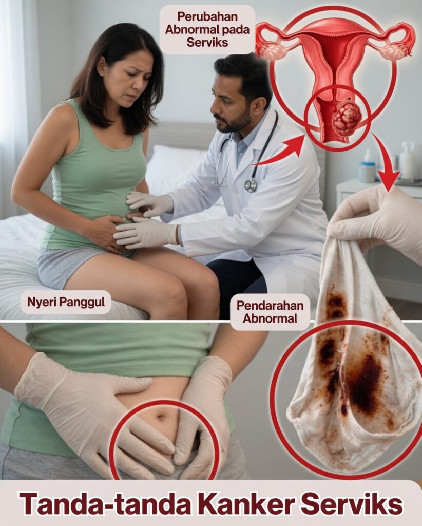 Kanker serviks bermula dari sel-sel di leher rahim, yaitu bagian bawah rahim yang terhubung dengan vagina. Pada fase awal, penyakit ini biasanya tidak menimbulkan gejala. Ketika tanda-tanda mulai muncul, keluhannya bisa sangat halus dan mudah disalahartikan sebagai: